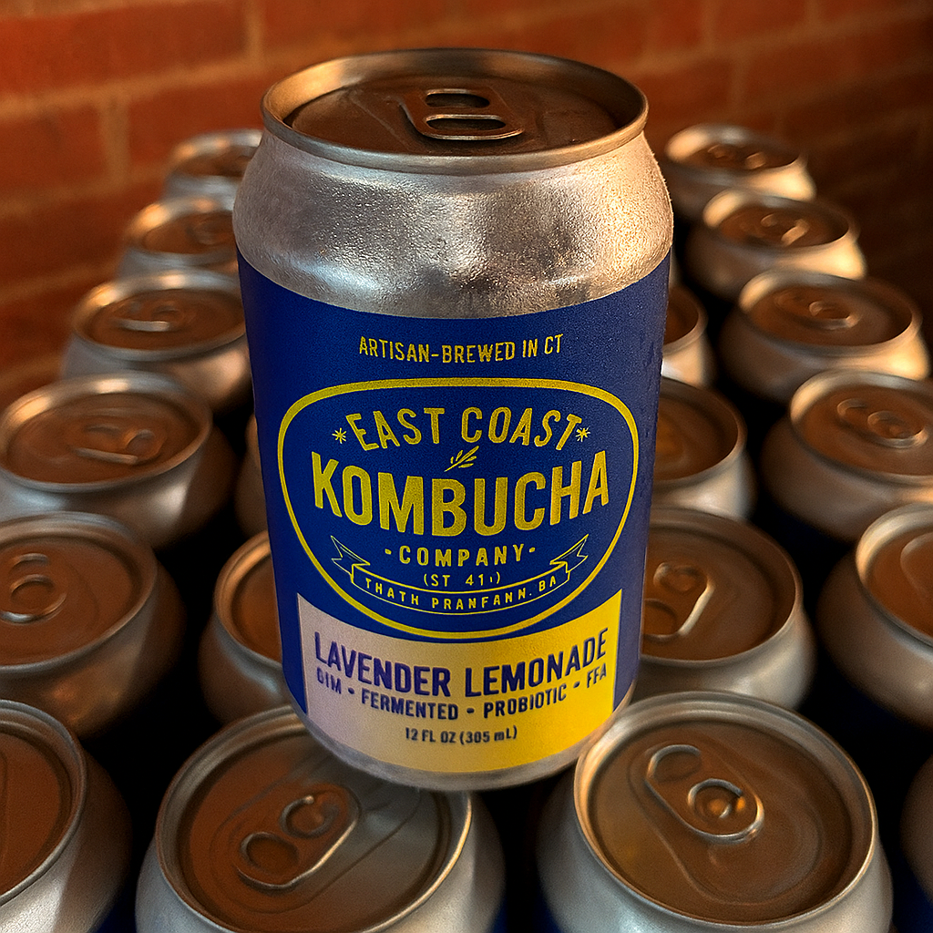 Ingredients: Filtered water, kombucha culture (yeast and bacteria cultures), black tea*, white tea*, rooibos tea*, yerba mate*, evaporated cane juice (sugar)*, Lemon juice concentrate*, Lavender *. (*organic ingredients)